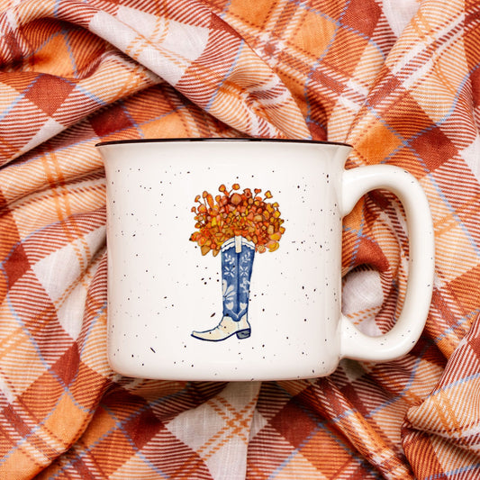 Blue & White Boot Mug | Ceramic Camp Mug Speckled in Cream | 13oz