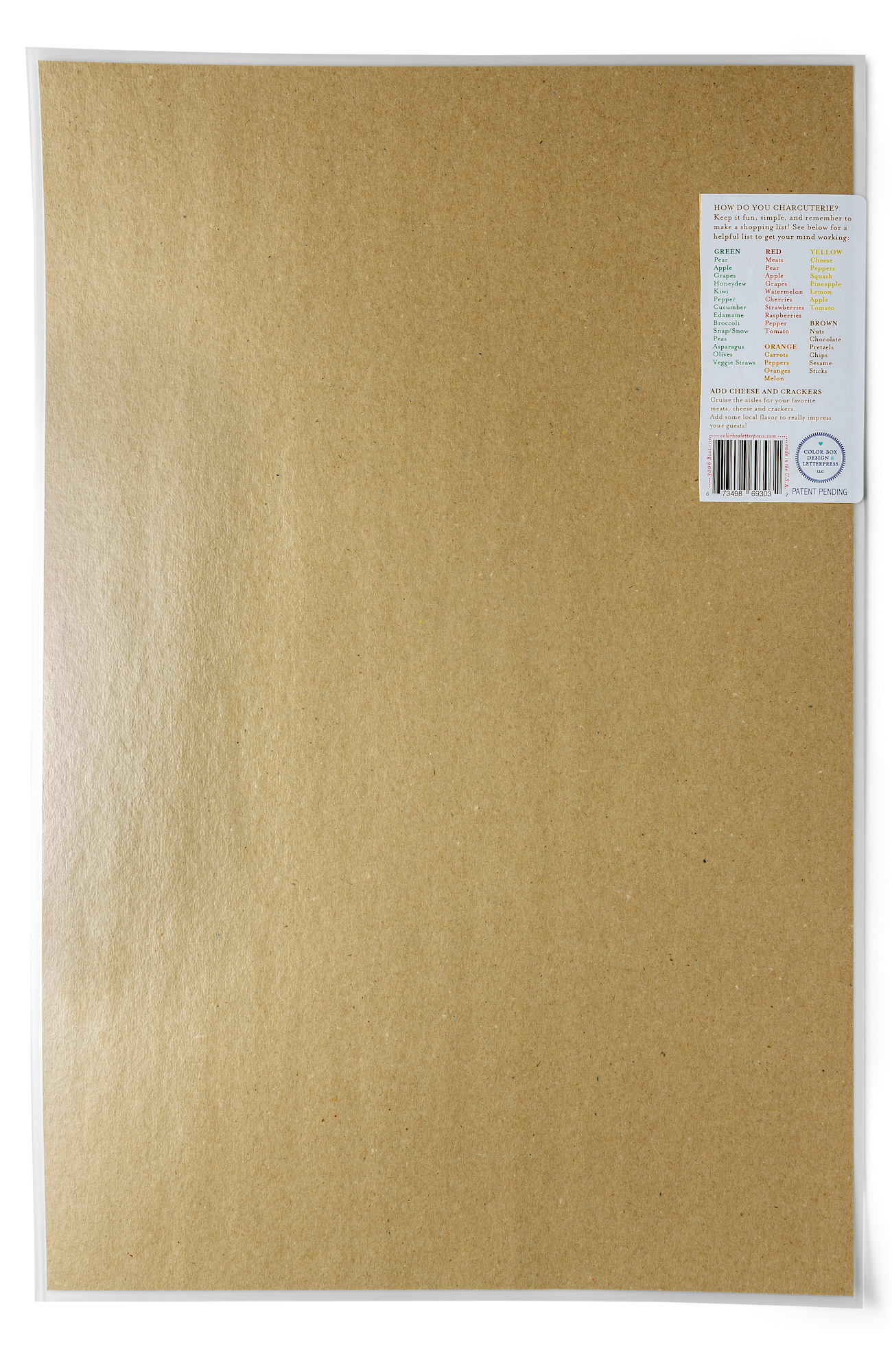 - Packaged in a sealed cello sleeve with color coded shopping list on back of label