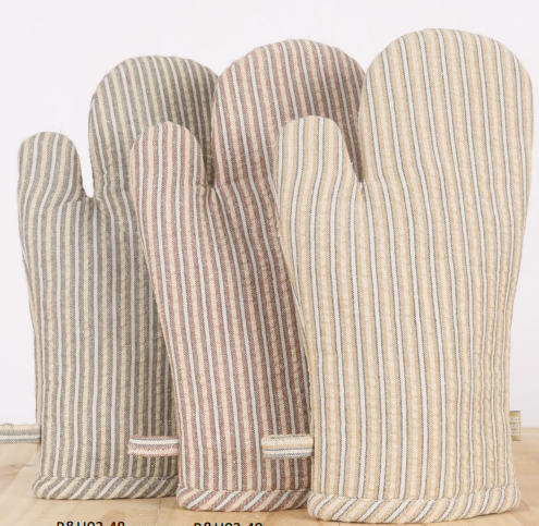 Enhance your kitchen with our seersucker oven gloves, made from 100% recycled cotton. Featuring a classic striped pattern, these quilted gloves offer excellent heat protection and a comfortable fit. A sustainable and timeless addition to your cooking essentials!